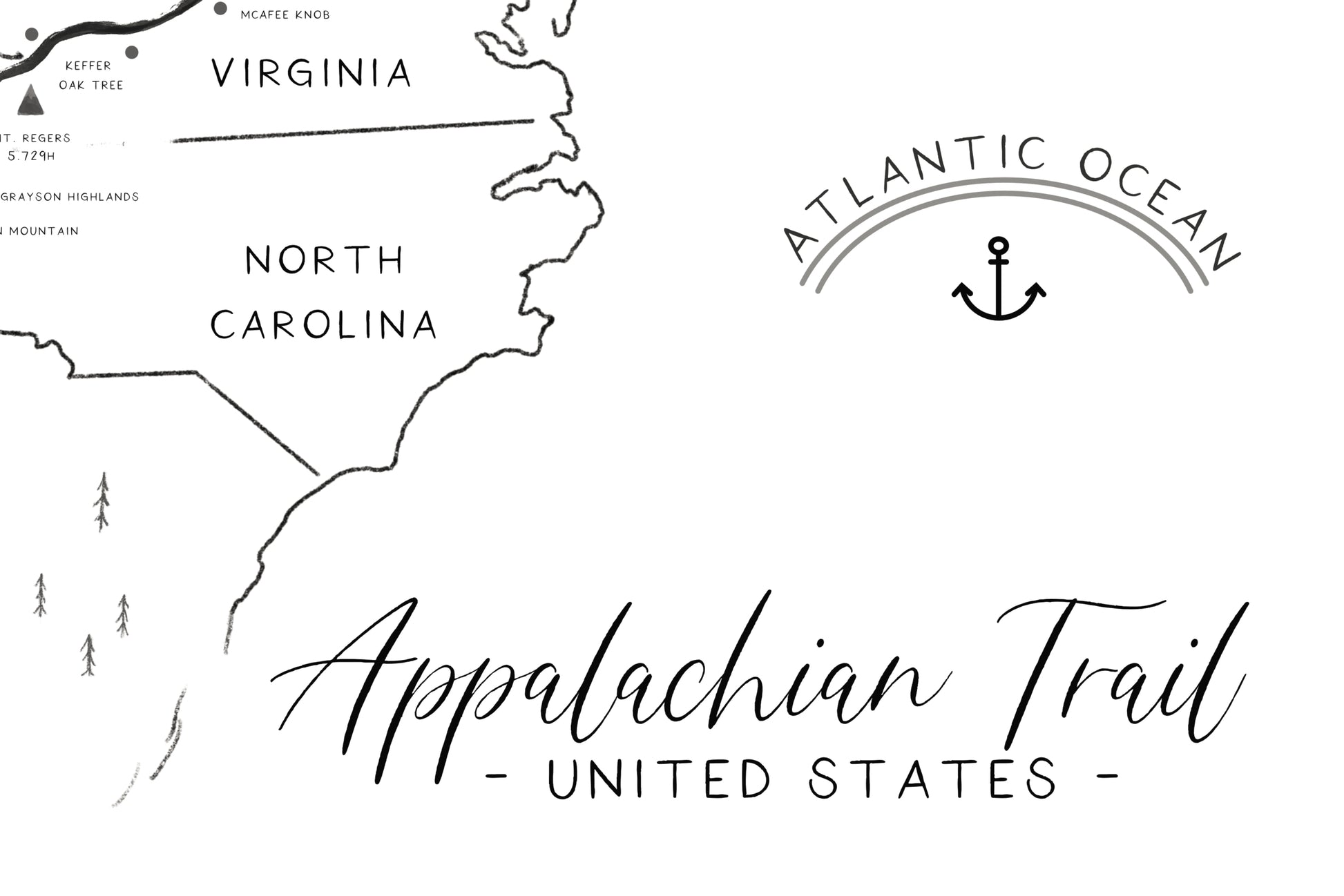 Appalachian Hiking Trail Map Poster, Minimalist Design