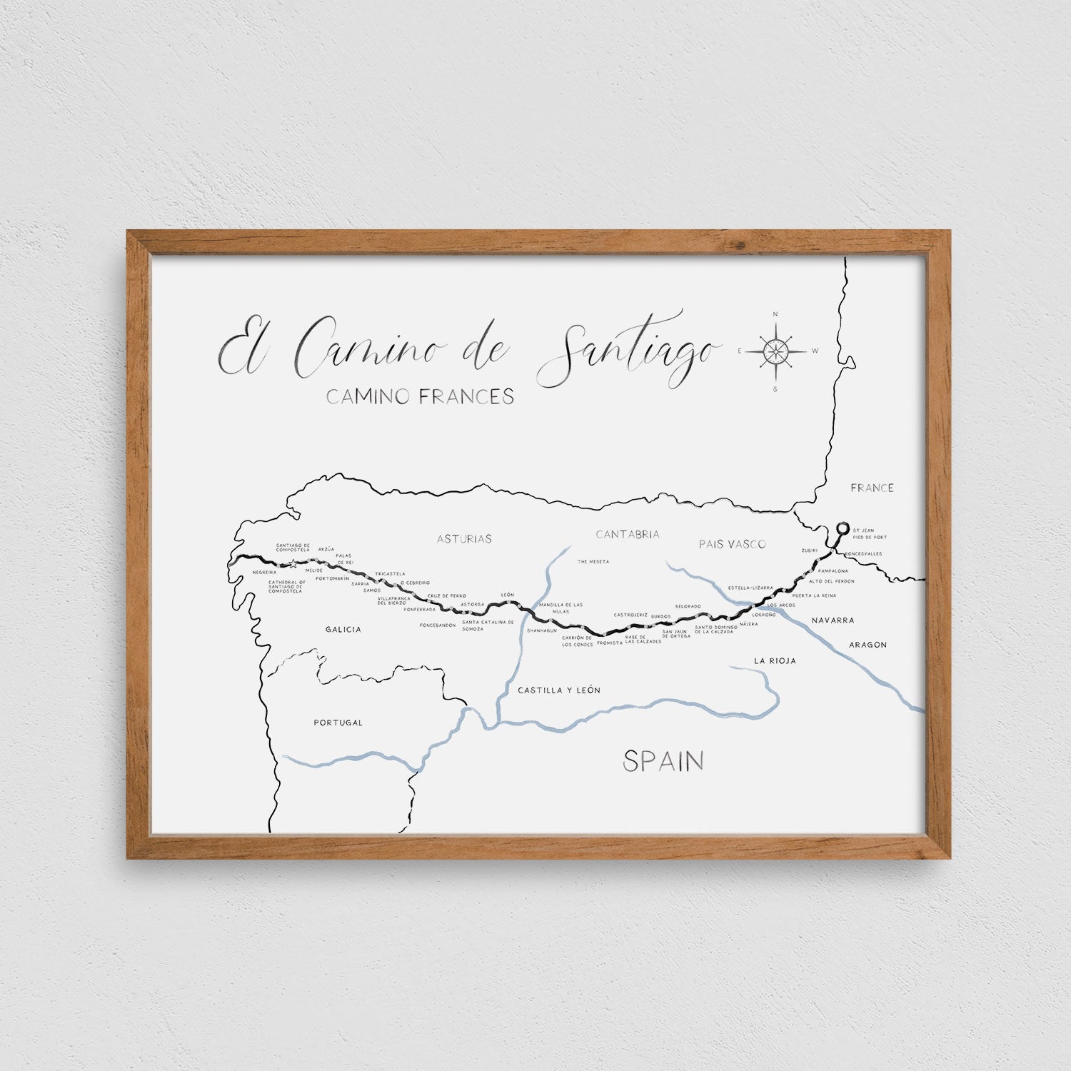 El Camino De Santiago Map Poster Hiking Print, Minimalist Design